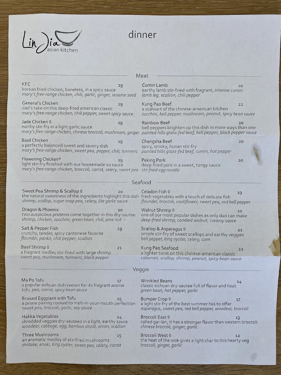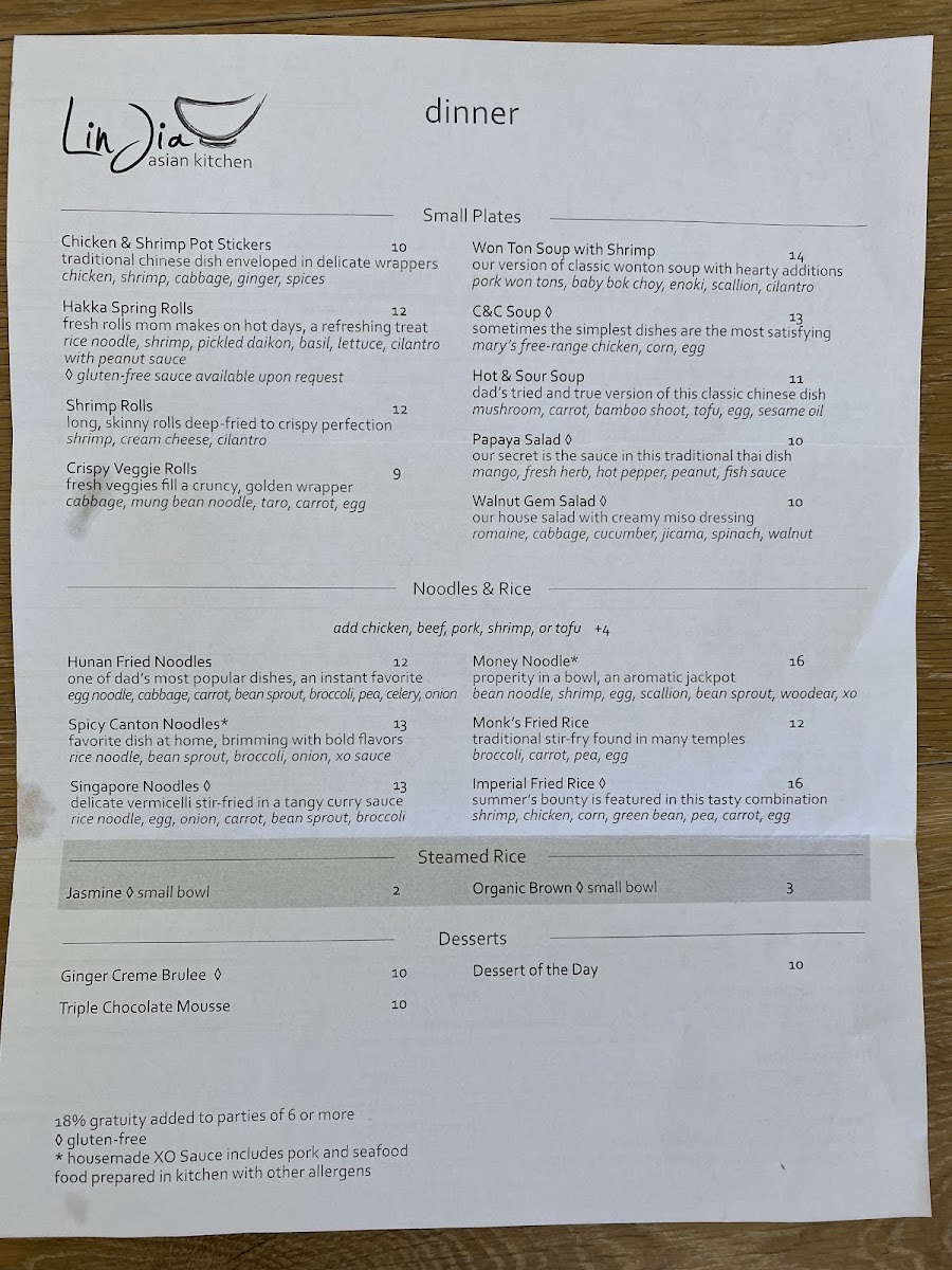Lin Jia Asian Kitchen Menu